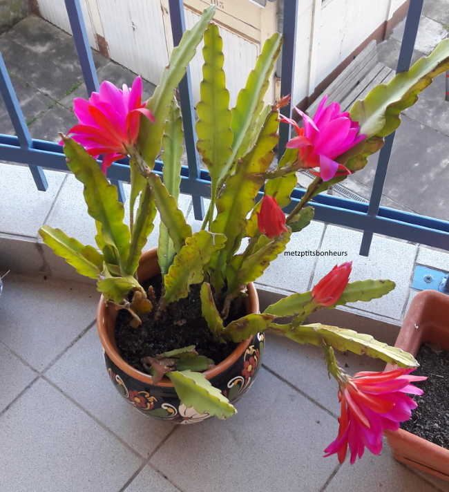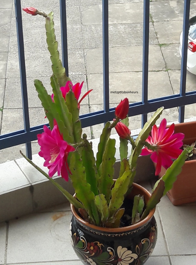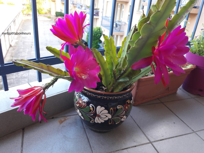 magnifique, il est vraiment très beau ton cactus , maman en a eu un de ce genre mais il a fleuri qu'une fois plus après elle en a eu marre l'a mis dehors sur le petit perron du séjour en bas.. et miracle une année que j'etais là avec kevin dans l'appart du bas, je m'occupais d'arroser le jardin un coup c'etait moi un coup kevin, hé bien on a bien tout arroser sauf le cactus on a oublié , ben il a fait plein de fleurs .. et je continue de penser que maman arrose de trop que ce soit les orchidées ou les cactus .. <br />