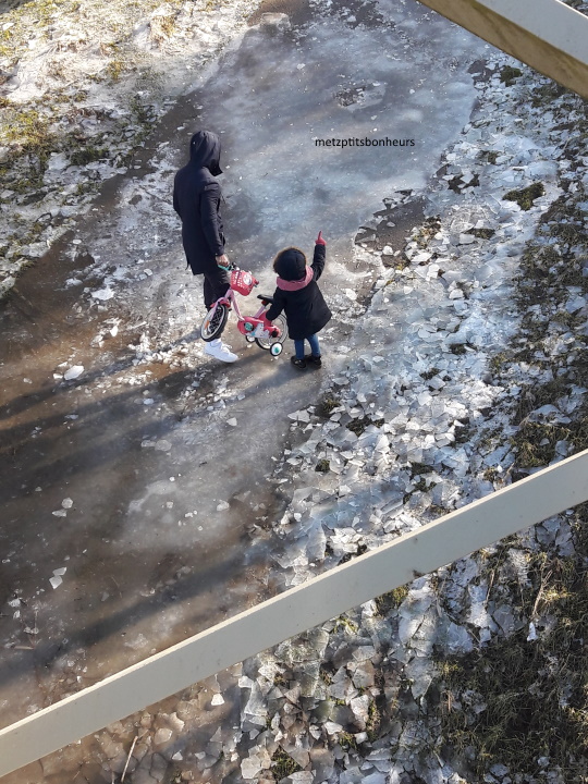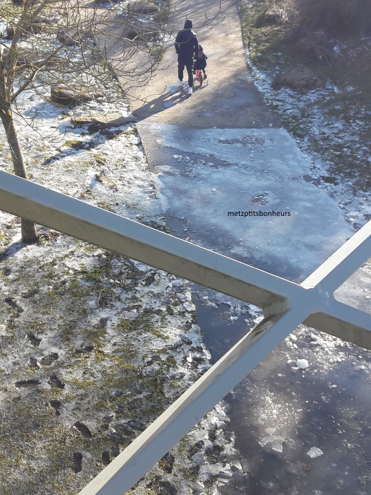 Chacun a sa façon de montrer l'hiver, moi la neige et la glace pour toi.Ce papa a emmené ssa fille sur la rivière gelée, elle sen souviendra peut-être la gamineBises et bon dimanche à vous. Annie