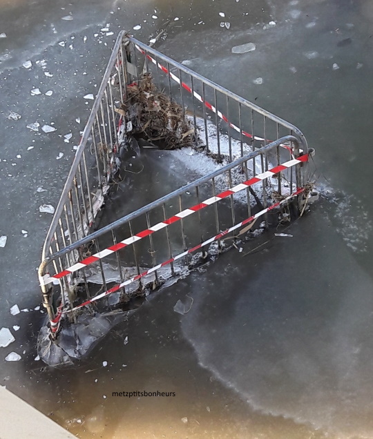 Bon la couche de glace paraît tout de même moins épaisse que sur le Mississipi ... 30 cm là-bas quand même ! Jolie balade glacée, je ne m'y serais pas risquée je crois ...Bon dimanche, bisous.Cathy
